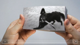Daumenkino mit 50 Seiten (100x56mm) und laminiertem Umschlag, handgefertigt in der Schweiz.